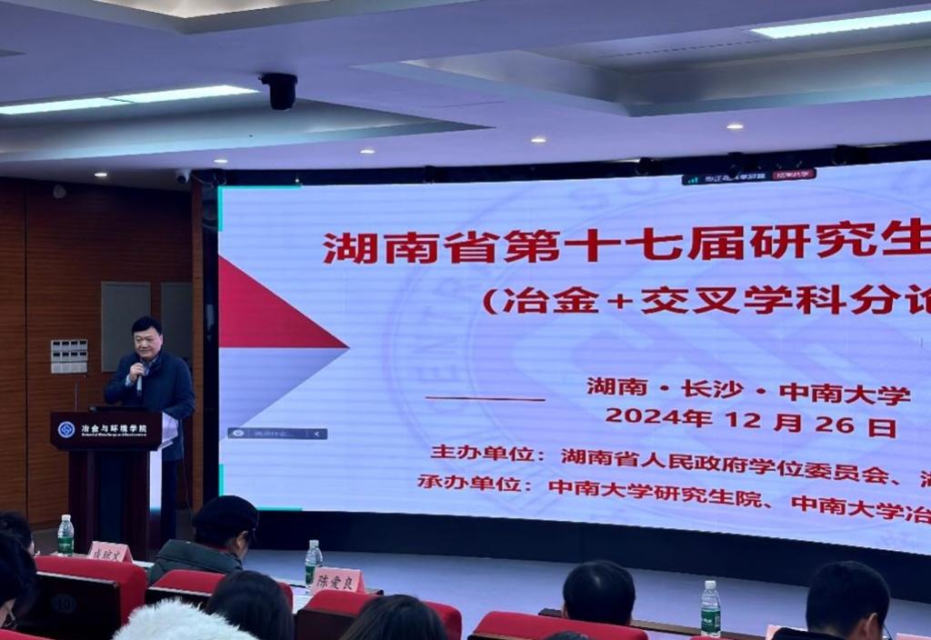 2024年12月26日,湖南省第十七届研究生创新论坛——“冶金+”交叉学科分论坛在yl9193永利集团新校区金贵楼成功举办。本次论坛秉持“跨界、交流、融合、创造”的理念,围绕“冶金+新能源”交叉学科领域下的新材料、智能冶金工厂等专题开展讨论研究。学院领导班子成员成琼文、陈爱良、朱忠平、刘芳洋亲临会场、学院部分师生线上线下参加本次创新论坛,会议现场人气高涨,反响热烈。论坛由学院副院长刘芳洋主持。