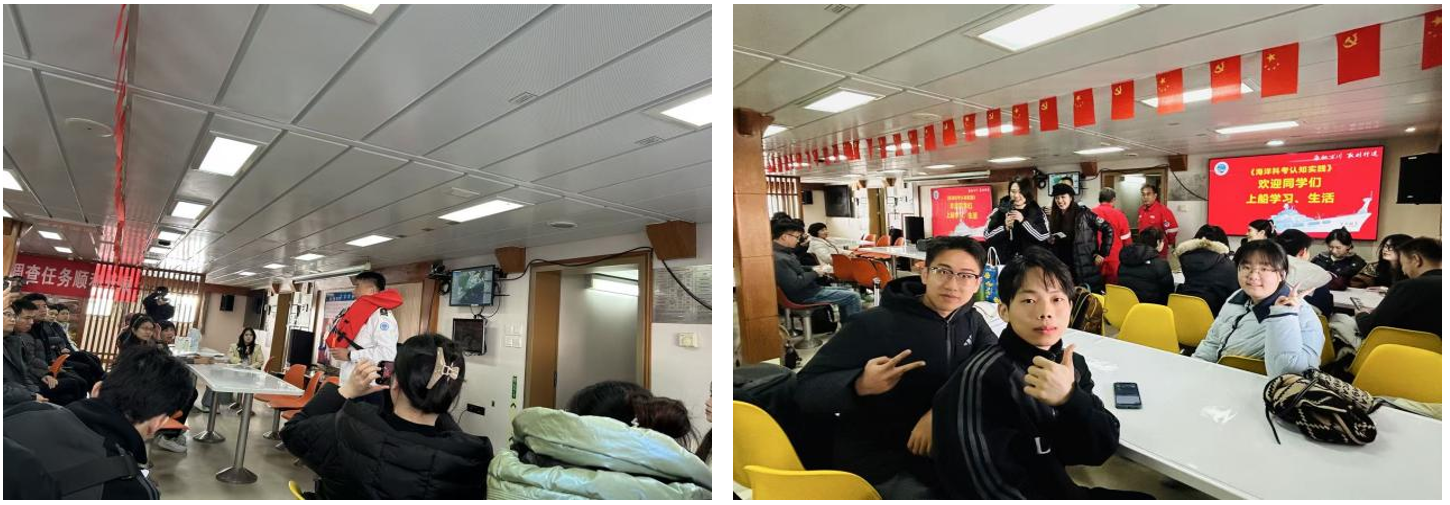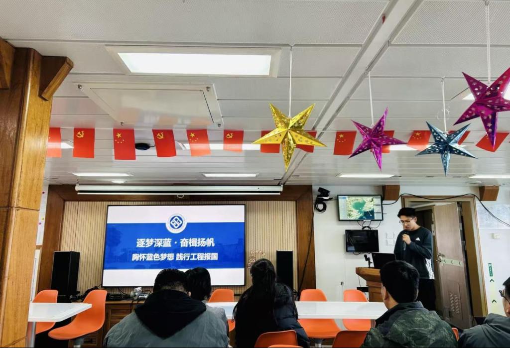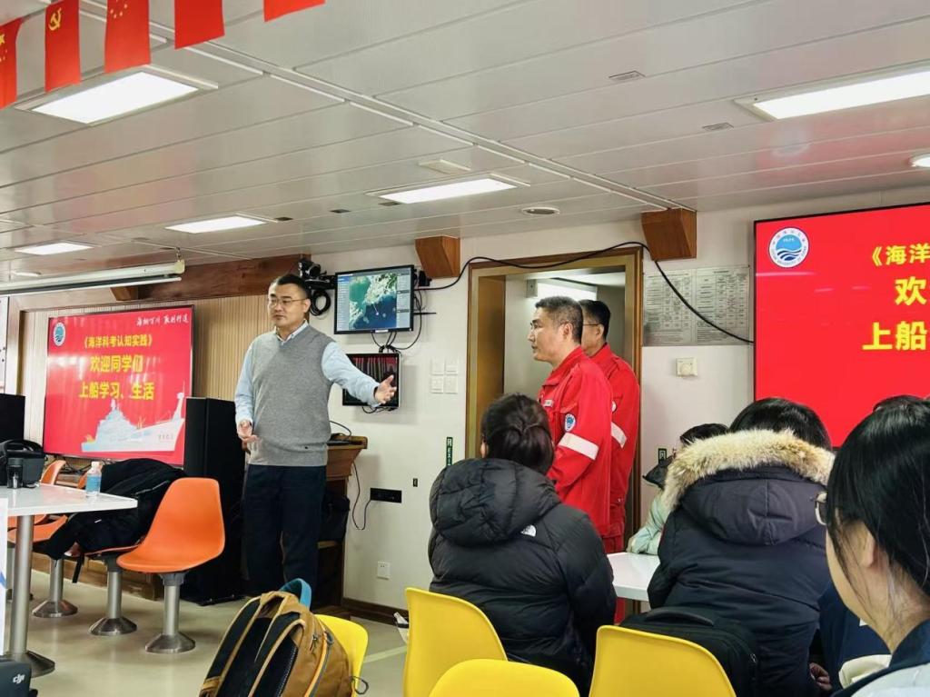 12月6日,代表团正式登上“东方红3”,科考船船员首先开展消防安全专项培训,详解船上安全规范与应急处置流程,帮助师生系统掌握海上作业安全准则。随后,中国海洋大学研究生院常务副院长陈朝晖教授作“海洋科学与人类文明”专题讲座,回顾海洋文明起源、展望海洋科技趋势、阐释深海探索战略意义,为后续科考实践筑牢理论根基,引导师生树立安全科考、科学探海的意识。