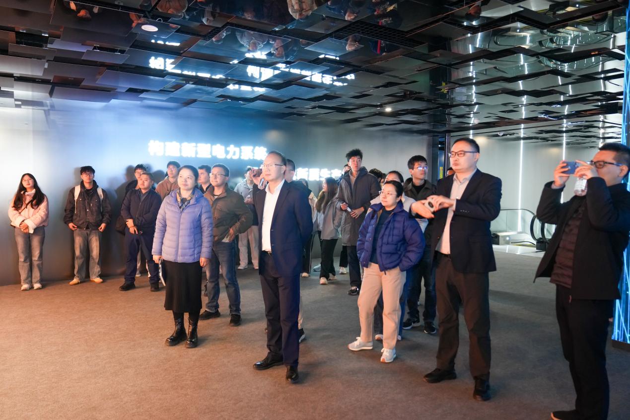 在国网湖南电力相关负责人陪同下,师生代表团参观了湖南新型电力系统创新中心。通过数字沙盘、动态仿真模型与实物展陈,沉浸式体验了新型电力系统的建设进程,系统了解湖南电网在主配网升级、新能源并网、负荷侧调控管理、储能技术应用及数字化转型等领域的创新实践与突出成效,切身感受电力科技的前沿发展,深刻体会电力行业在服务能源转型、助力“双碳”目标中的核心支撑作用,激发了师生投身电力领域科研与实践的热情,为打造具有湖南特色的新型电力系统、推动能源电力行业与高等教育协同发展贡献力量。