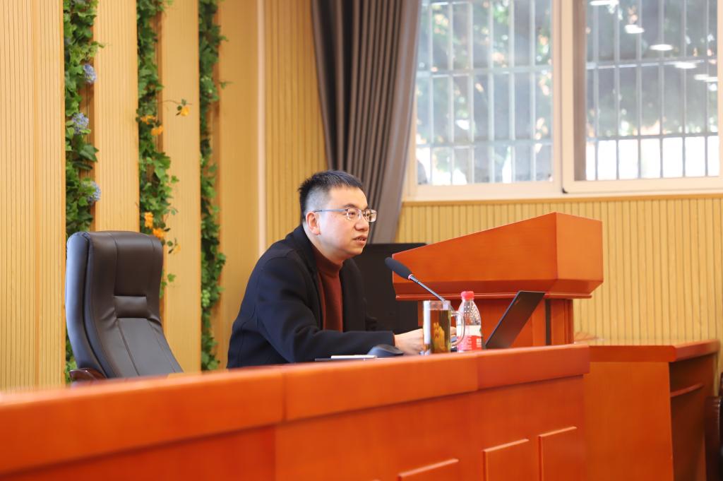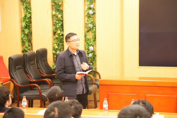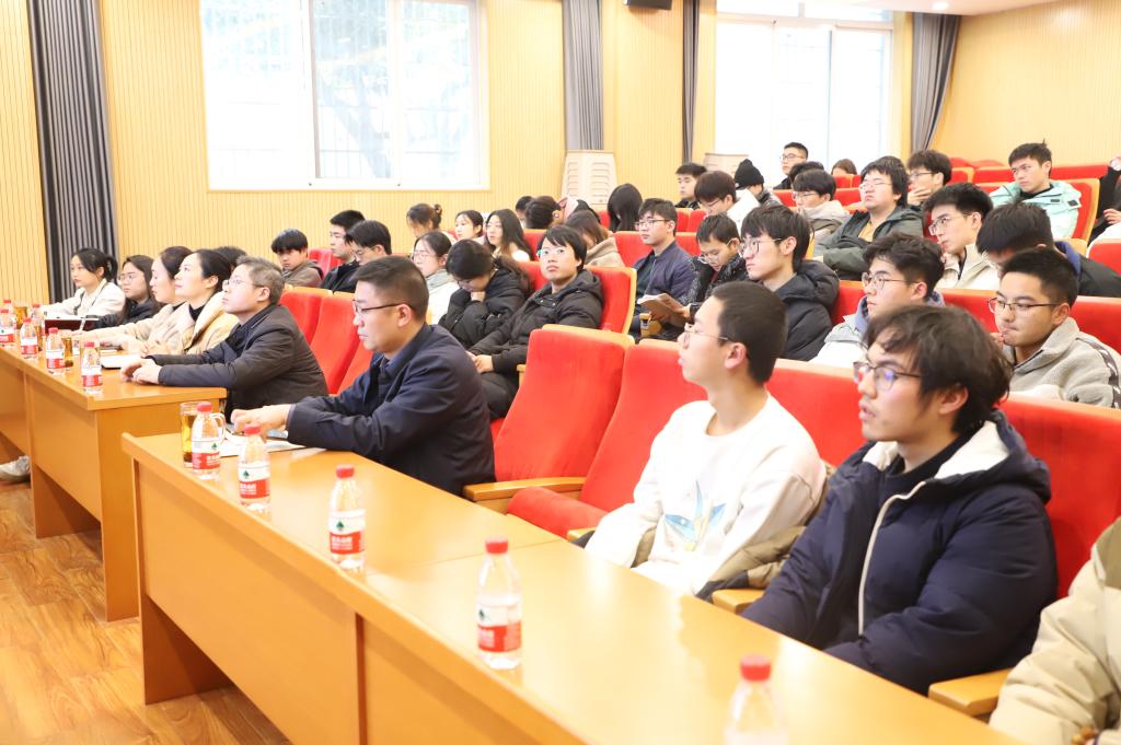 1月4日下午,yl9193永利集团党委常委、副校长何军在生物楼102会议室为资源加工与生物工程学院、人文学院、电子信息学院的学生代表讲授“新时代十年的伟大变革”主题思政课。学校办公室副主任蒋清华、人文学院党委副书记刘亚红、资源加工与生物工程学院党委副书记刘若华、电子信息学院党委副书记董晶晶及来自三个学院的辅导员和学生代表参加本次思政课。