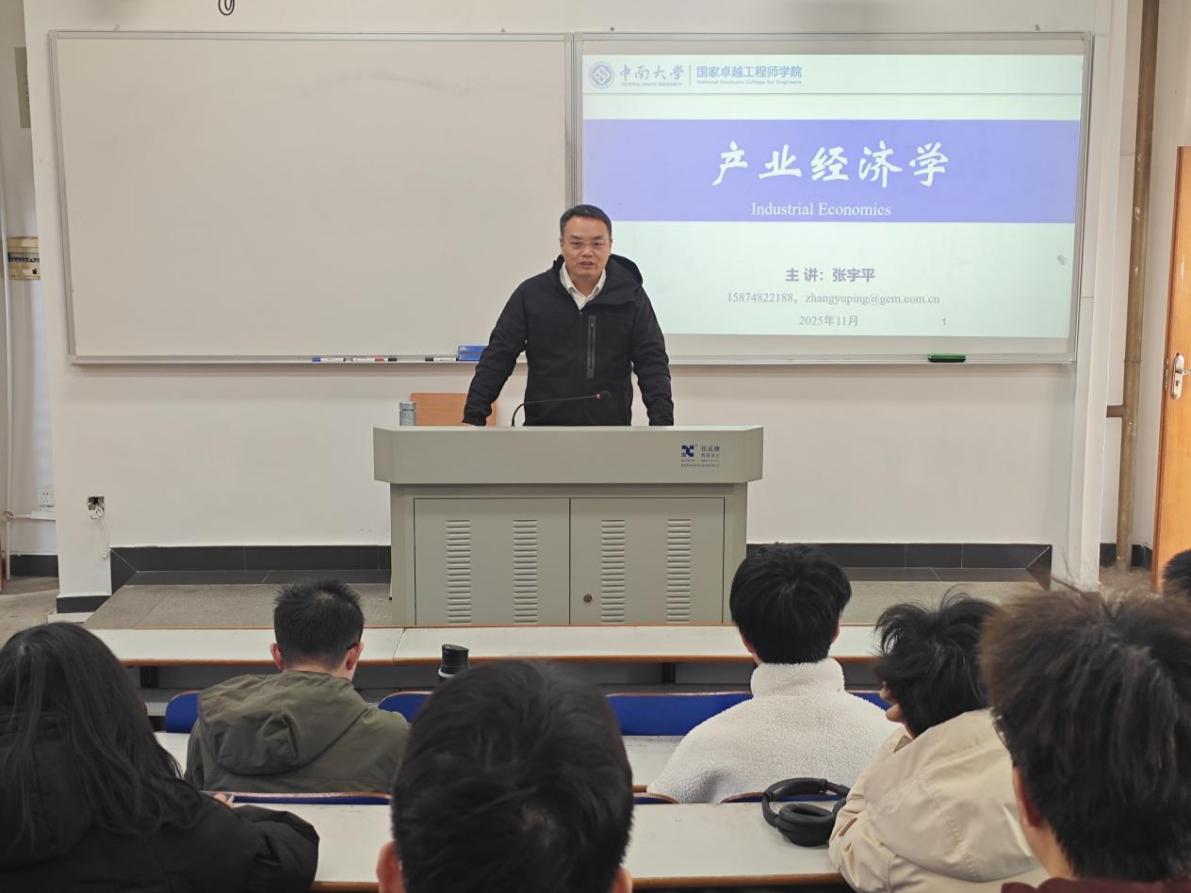 为深化产教融合,推动校企合作课程建设,11月21日,由成琼文研究员牵头建设的研究生课程《产业经济学》迎来企业导师授课环节。学院特邀格林美股份有限公司副总经理、武汉动力电池再生技术有限公司董事长兼总经理张宇平博士走进课堂,为硕博士研究生带来一场紧扣产业实际的专题授课。本次授课由学院副院长陈爱良教授主持。 在正式授课开始之前,陈爱良教授代表学院对张宇平博士的到来表示热烈欢迎。她表示,聘请有产业背景和管理...