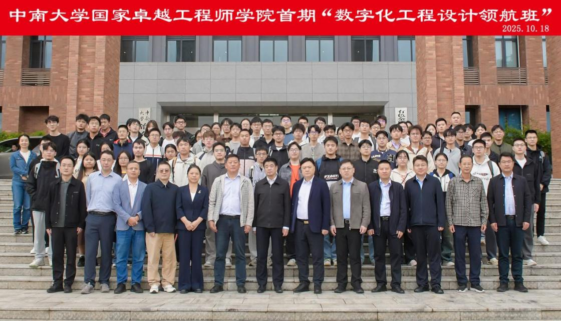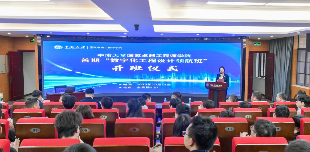 2025年10月18日上午,学院首期“数字化工程设计领航班”开班仪式在潇湘校区金贵楼隆重举行。中国恩菲工程技术有限公司党委书记、董事长刘诚,中国有色工程有限公司科技管理部部长李兵、人力资源部部长助理张岳,中国恩菲工程技术有限公司长沙分公司总经理习泳;党委书记成琼文,副院长陈爱良,冶金与环境学院副院长王亲猛等校企领导嘉宾出席仪式,仪式由副院长陈爱良主持。来自学院各专业的一百余名优秀学生作为首期领航班学员...